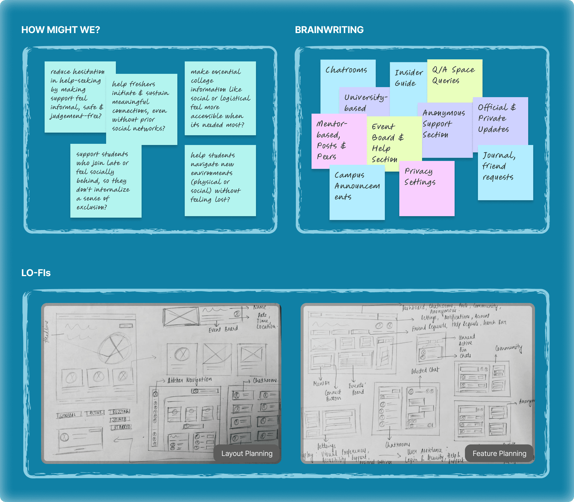 The intent wasn’t to define the problem, it was to discover it. That meant stepping back, silencing assumptions that were lingering within as a senior, and letting real fresher life speak for itself to know the unknown.