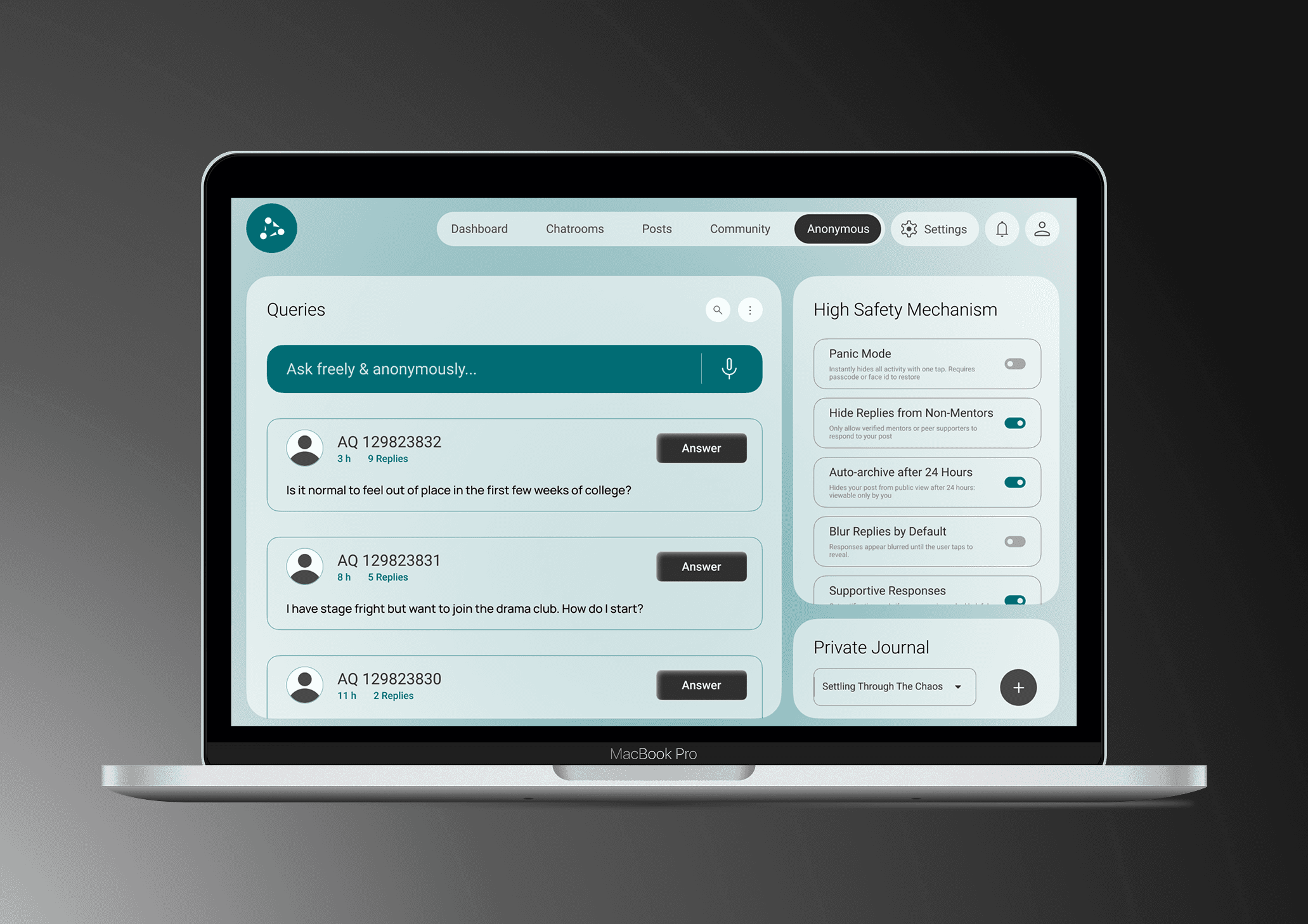More importantly, the project taught me to design beyond surface-level engagement, focusing instead on emotional safety, intent-driven interaction, and the responsibility of structure when designing for vulnerable transitional phases.